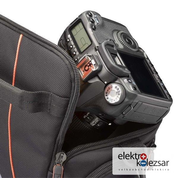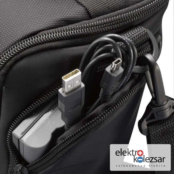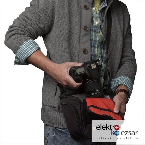 - Dvě postranní kapsy pro příslušenství jako baterie, nabíječka, kabely, krytka objektivu apod.