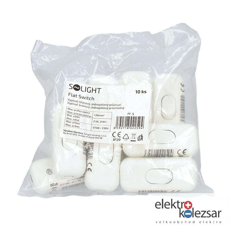 Solight vypínač šňůrový, jednopólový průchozí, bílý