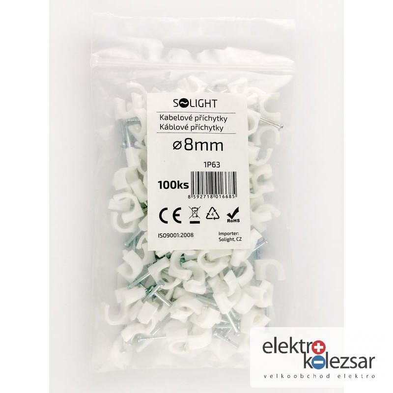Solight kabelové příchytky, průměr 8mm, bílé, 100ks