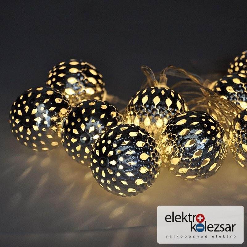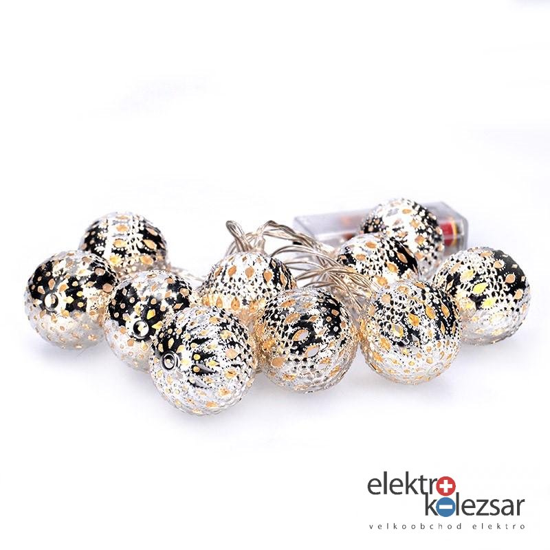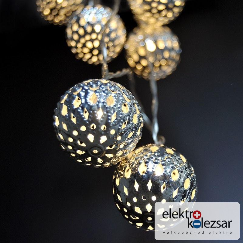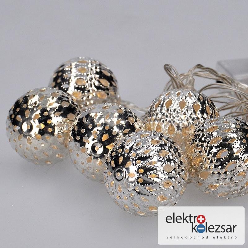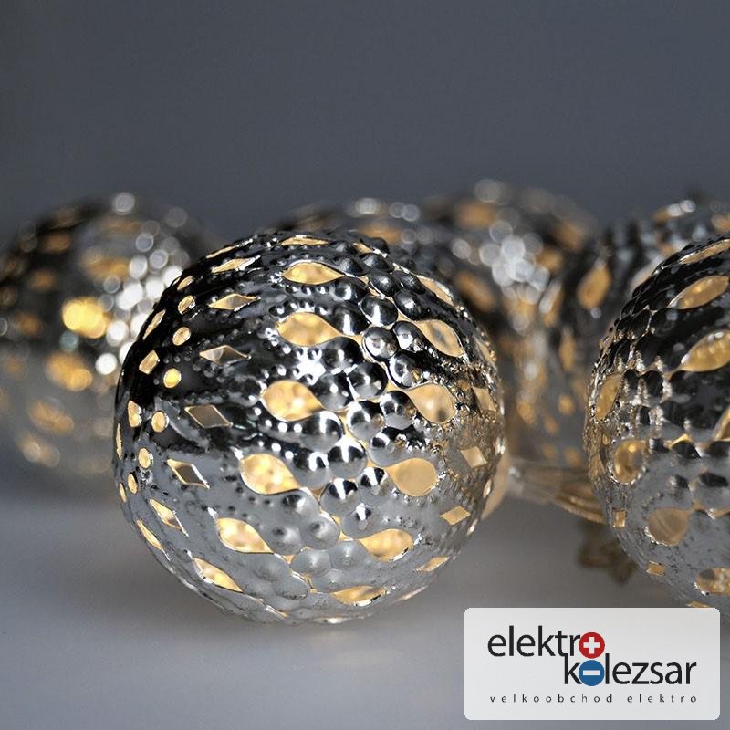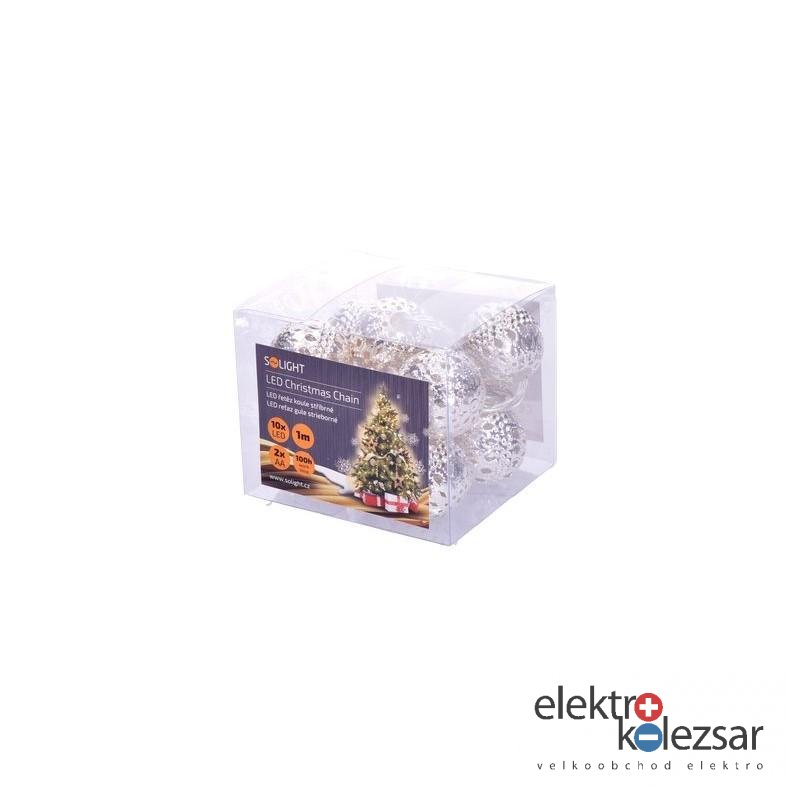 Solight LED řetěz vánoční koule stříbrné, 10LED řetěz, 1m, 2x AA, IP20