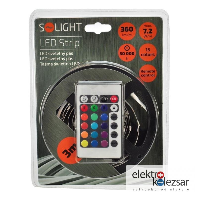 Solight LED světelný pás, RGB, 3m, sada s 12V adaptérem a dálk. ovladačem, 7,2W/m, IP20