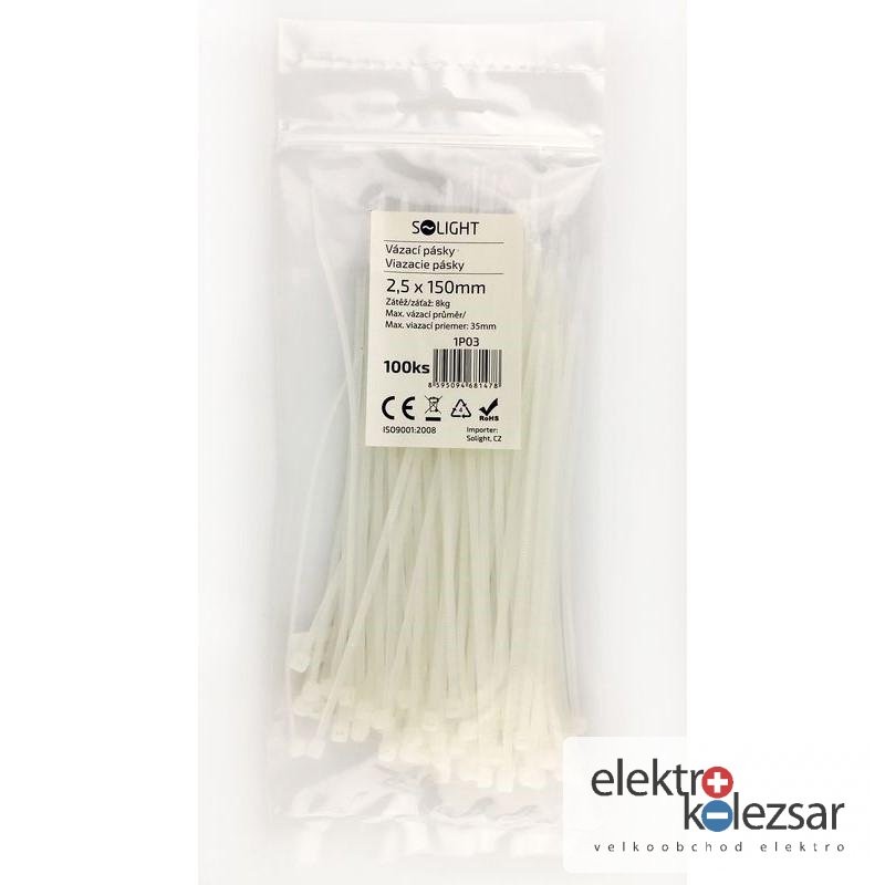 Solight vázací nylonové pásky, 2,5 x 150mm, natural, 100ks