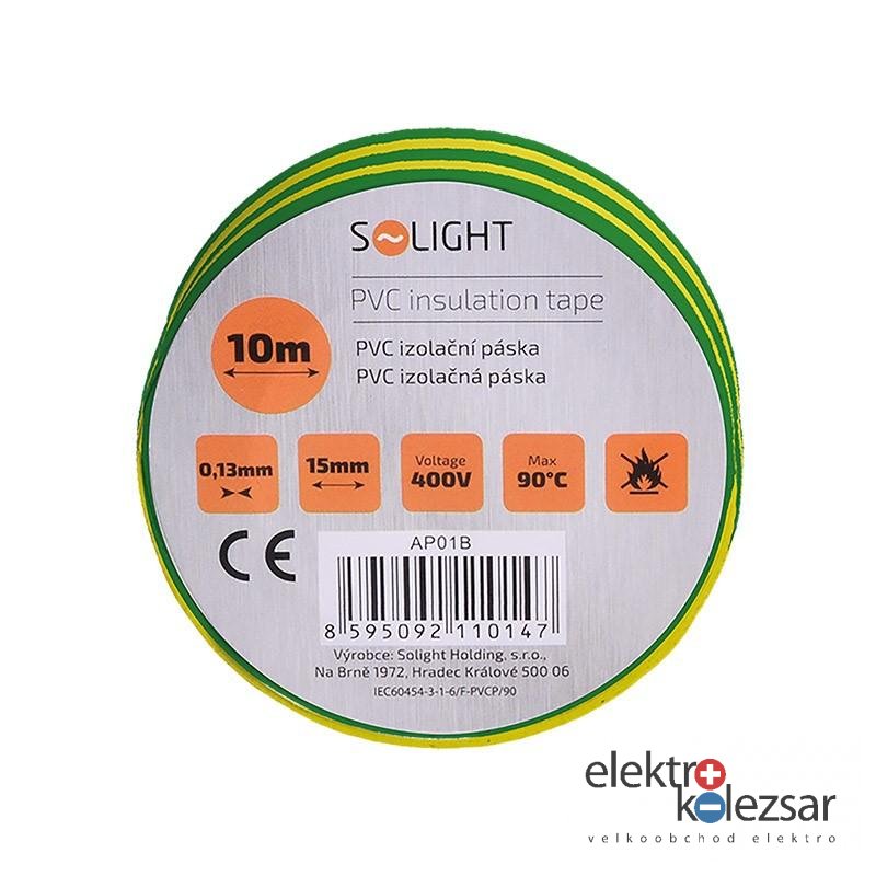 Solight izolační páska, 15mm x 0,13mm x 10m, žlutozelená