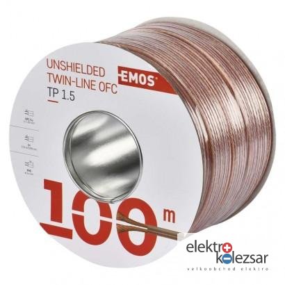 barva izolace vnitřních vodičů: není|barva pláště: průhledná, průhledná|dvojitá izolace: ne|materiál pláště: PVC|materiál vnitřního vodiče: OFC měď (Cu)|materiál vodičů stínění: není|maximální provozní napětí: 50 V|počet drátků stínění: není|předpokládané použití: propojení reproduktorů|prodejní obal: 100 m, cívka|průměr vnitřního vodiče: 210× 0,095 mm|průřez drátků stínění: není|průřez vodiče: 1,5 mm²|stínění: ne|typové označení: SP150/TP|vnější izolace: 2× 3,6 mm|záruční doba: 5 let|způsob balení - délka: 100 m