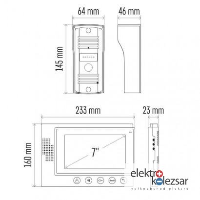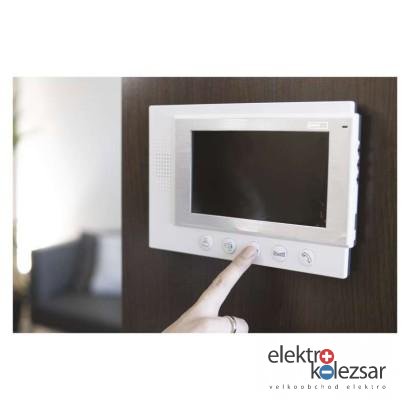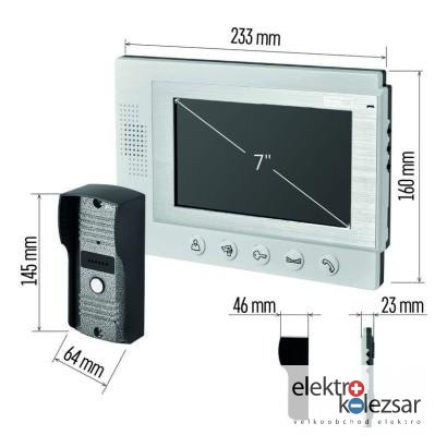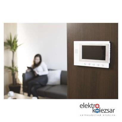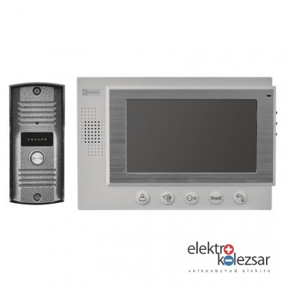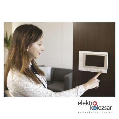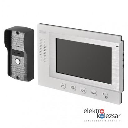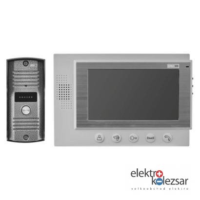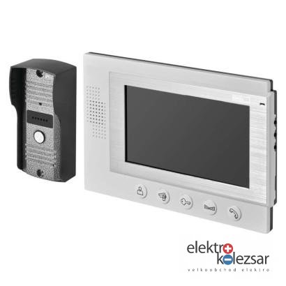 Jednoduchá sada videovrátného. Obraz je zobrazován na velký 7" barevný LCD. Přístroj je napájen pomocí přiloženého adaptéru na 12 V. Zařízení umožňuje obsluhu dveřního zámku a pojezdu brány.