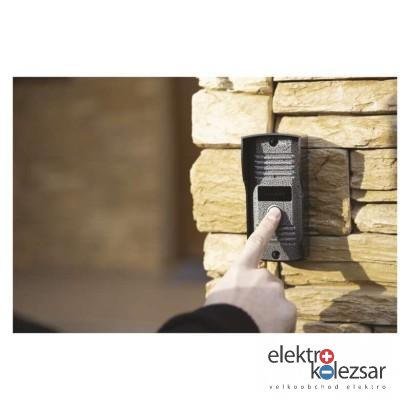 antivandal provedení kamerové jednotky: ano|aplikace pro vzdálenou správu: bez aplikace|automatické ukládání snímků: ne|barevný displej: ano|barva: bílá|doporučená kabeláž: FTP nebo SYKFY 5 × 2 × 0,5|dveřní zámek součástí balení: ne|intercom: ano|krytí kamerové jednotky: IP44|maximální úhel záběru kamery: 80°|montáž: na stěnu|možnost připojení přídavných kamer: ano|napájení kamerové jednotky: z monitoru|napájení monitoru: 12 V DC (součástí balení)|ovládání pojezdu brány: ano|ovládání zámku: ano|počet kamerových jednotek: 1|počet melodií: 12|počet monitorů: 1|počet propojovacích vodičů (monitor/zámek/brána): 4+0+2|počet tlačítek kamerové jednotky: 1|přísvit kamery: ano, do 150 cm|prodejní obal: 1 ks, krabice|regulace hlasitosti: ano|rozměr kamerové jednotky: 64 × 46 × 145 mm|rozměr monitoru: 233 × 23 × 160 mm|snímací prvek kamery: 1/3 CCD Pinhole s IR přísvitem|velikost displeje: 7"|záruční doba: 2 roky|zdroj pro zámek součástí balení: ne|zdroj součástí balení: ano