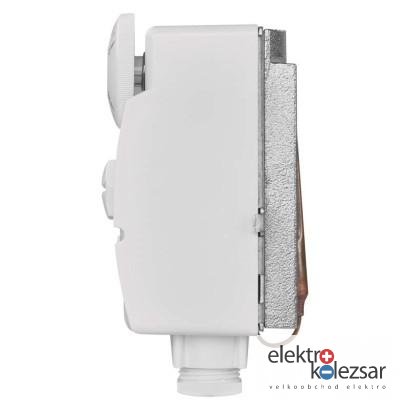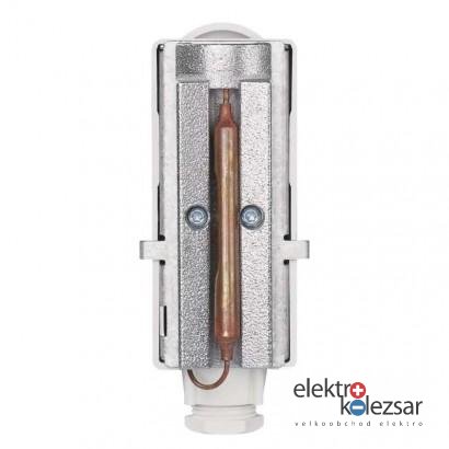 Příložný termostat pro povrchovou montáž. Snímá teplotu vody v zásobnících teplé užitkové vody a nebo v topných systémech. Umožňuje regulaci teploty, hlídání teplotních omezení a funkci poklesu teploty.