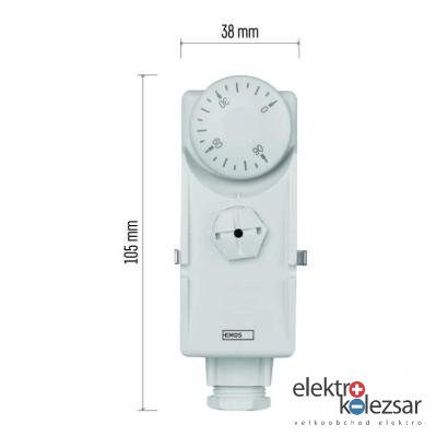 barva: bílá|délka kapilárového čidla: neuvádí se|dosah ve volném prostoru: neuvádí se|druh regulace: vytápěcí a chladící systém|funkce ON/OFF: ne|funkce prázdniny: ne|funkce Set-back: neuvádí se|kalibrace teploty: ne|měření teploty: 0 °C až 90 °C|možnost propojení s dalšími detektory: neuvádí se|napájení: 230 V, 400 V AC|napájení brány: neuvádí se|napájení přijímače: neuvádí se|napájení vysílače: neuvádí se|nastavení teploty: 0 °C až 90 °C, rozlišení 5 °C|nastavitelný rozptyl teploty: neuvádí se|ochrana proti zamrznutí: ne|počet programů: neuvádí se|podsvícený displej: neuvádí se|pracovní frekvence: neuvádí se|prodejní obal: 1 ks, krabička|protokol: –|rozměr: 38 × 54 × 105 mm|rozměr brány: neuvádí se|rozměr přijímače: neuvádí se|rozměr vysílače: neuvádí se|součást balení: neuvádí se|spínaná zátěž: 16 A odporově, 4 A induktivně|spínání: napěťové 230 V AC, 50 Hz|typ nastavení teploty: neuvádí se|typ ovládání: manuální termostat|typ termostatu: drátový příložný