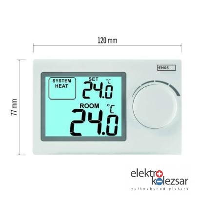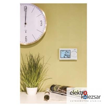 barva: bílá|délka kapilárového čidla: neuvádí se|dosah ve volném prostoru: neuvádí se|druh regulace: vytápěcí a chladící systém|funkce ON/OFF: ne|funkce prázdniny: ne|funkce Set-back: ne|kalibrace teploty: ano|měření teploty: 0 °C až 40 °C, rozlišení 0,1 °C|možnost propojení s dalšími detektory: neuvádí se|napájení: 2× 1,5 V AAA (součástí dodávky)|napájení brány: neuvádí se|napájení přijímače: neuvádí se|napájení vysílače: neuvádí se|nastavení teploty: 5 °C až 35 °C, po 0,5 °C|nastavitelný rozptyl teploty: ±0,2 °C|ochrana proti zamrznutí: ano|počet programů: uživatelsky nastavitelná teplota|podsvícený displej: ano|pracovní frekvence: neuvádí se|prodejní obal: 1 ks, krabička|protokol: –|rozměr: 30 × 120 × 77 mm|rozměr brány: neuvádí se|rozměr přijímače: neuvádí se|rozměr vysílače: neuvádí se|součást balení: neuvádí se|spínaná zátěž: 8 A odporově, 2 A induktivně|spínání: 230 V AC nebo beznapěťové|typ nastavení teploty: manuálně|typ ovládání: manuální pokojový termostat|typ termostatu: drátový