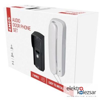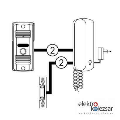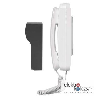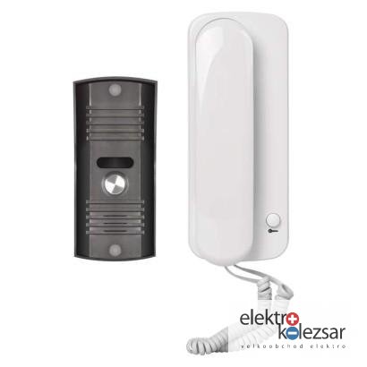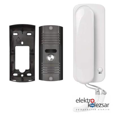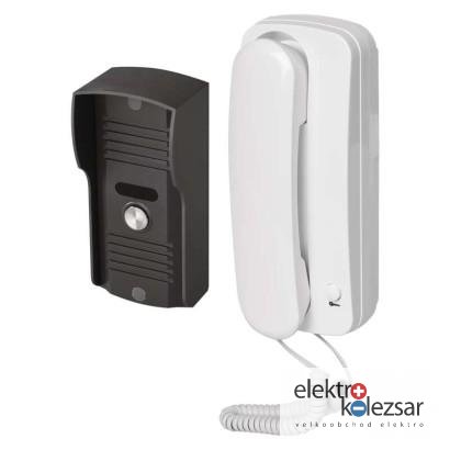 barva: bílá|doporučená kabeláž: UTP/SYKFY/2 × 0,5mm|materiál dveřního panelu: kov|materiál sluchátka: plast|montáž: na stěnu|napájení: 12 V DC (součástí balení)|ovládání zámku a pojezdu brány: pouze dveřní zámek|počet melodií: 1|počet sluchátek: 1|počet tlačítek: 1|počet vodičů (monitor/zámek/brána): 2+2+0|podsvícené tablo: ne|prodejní obal: 1 ks, krabice|produkt: sada audio vrátného|prostor pro jmenovky: ne|regulace hlasitosti: ne|rozměr dvěřní stanice: 35 × 65 × 145 mm|rozměr sluchátka: 75 × 93 × 225 mm|součást balení: dveřní panel, zdroj, sluchátko|zdroj součástí balení: ano