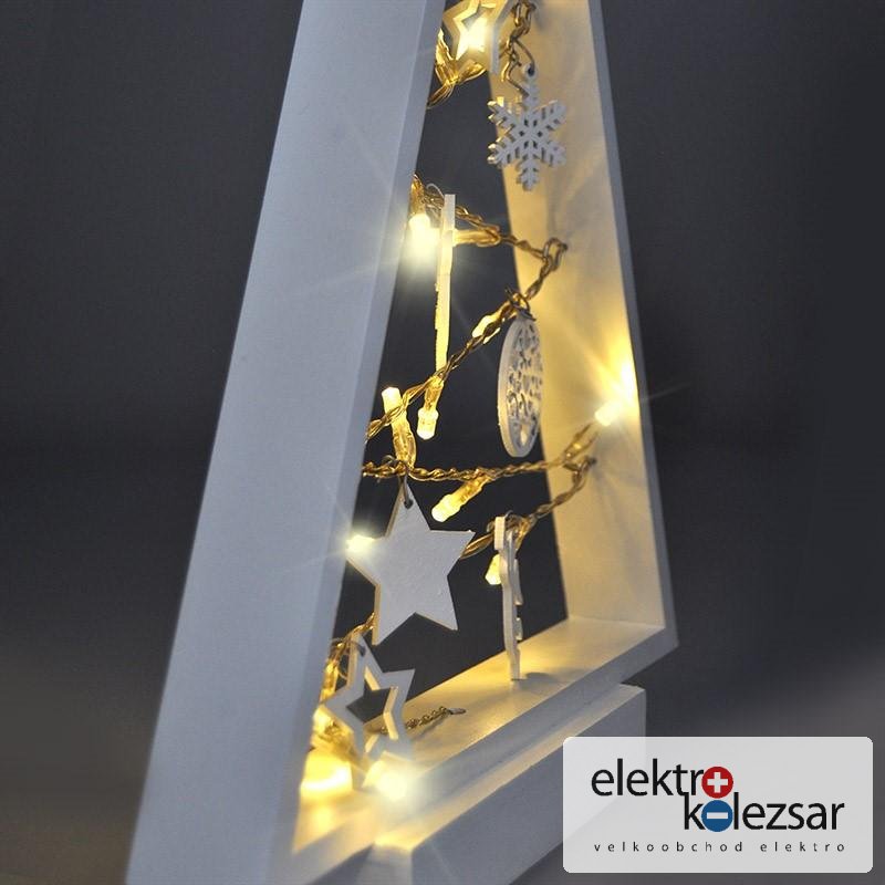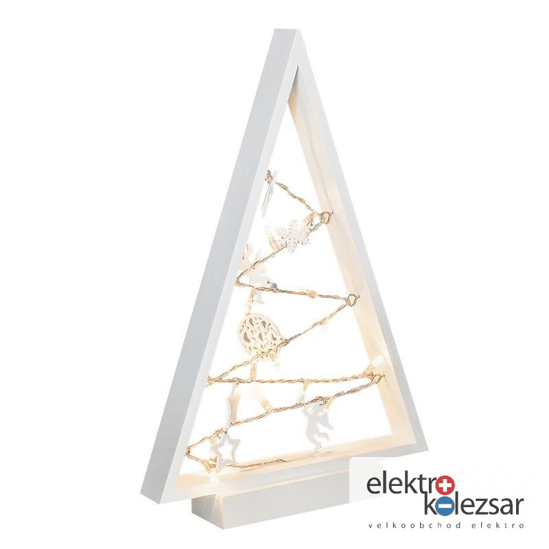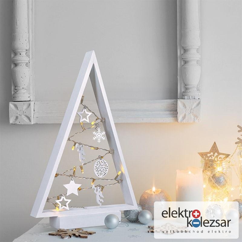Solight LED dřevěný vánoční stromek s ozdobami, 15LED, přírodní dřevo, 37cm, 2x AA