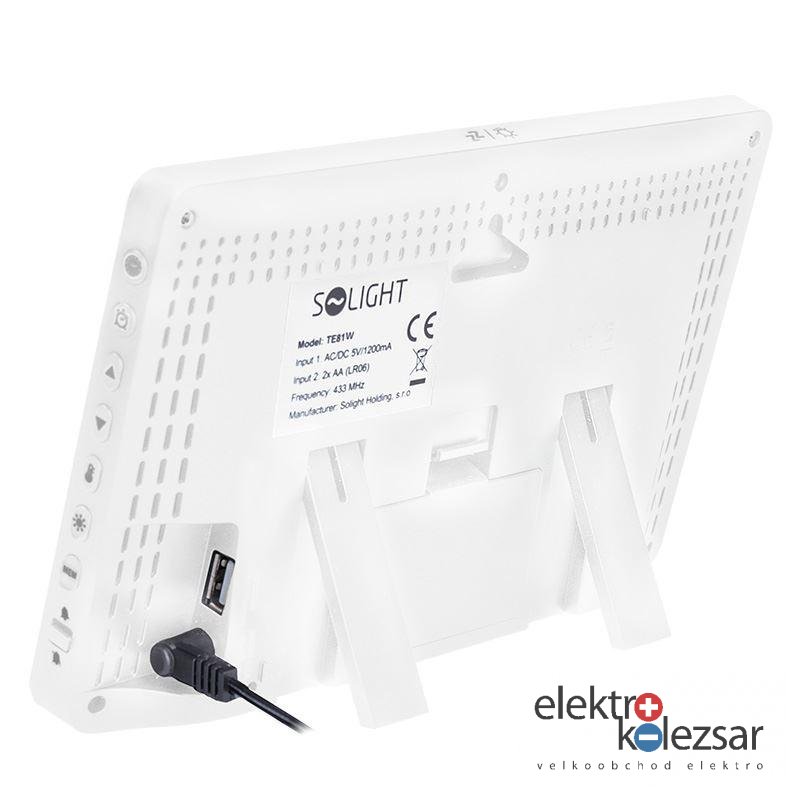 Solight meteostanice, extra velký barevný LCD, teplota, vlhkost, tlak, RCC, USB nabíjení, bílá