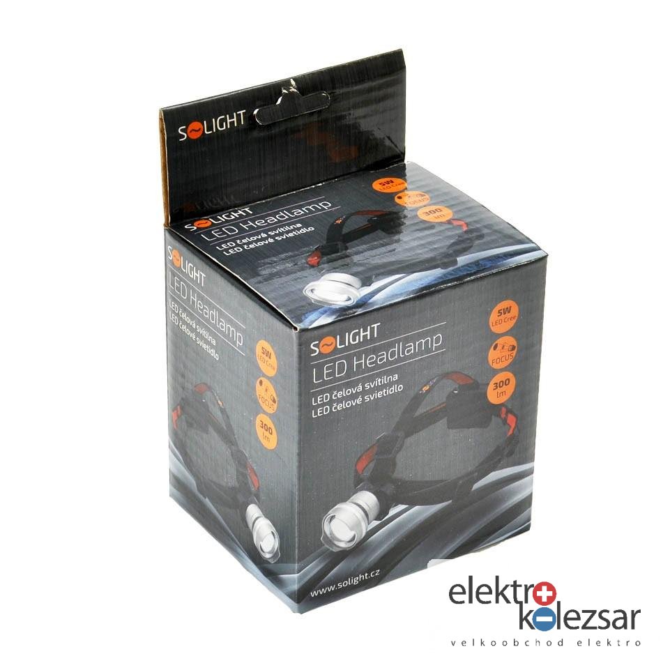 Solight LED čelová svítilna, 300lm, Cree XPG R5, fokus, 3 x AA