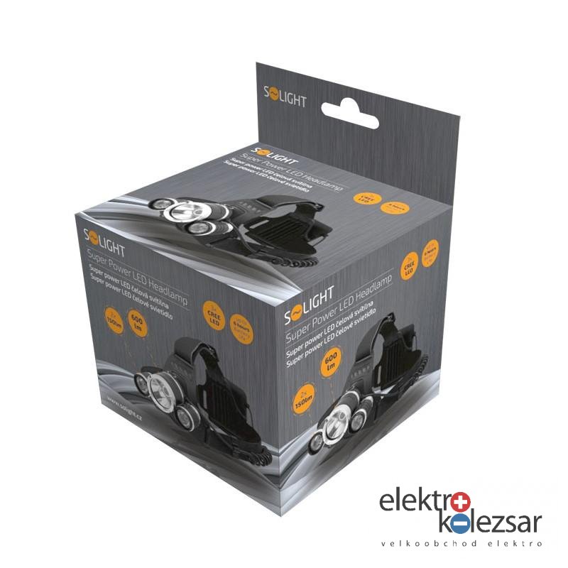 Solight LED čelová svítilna SUPER POWER, 900lm, 3x Cree LED, 4x AA
