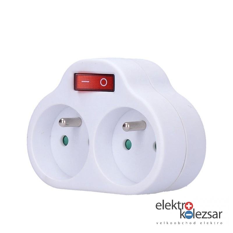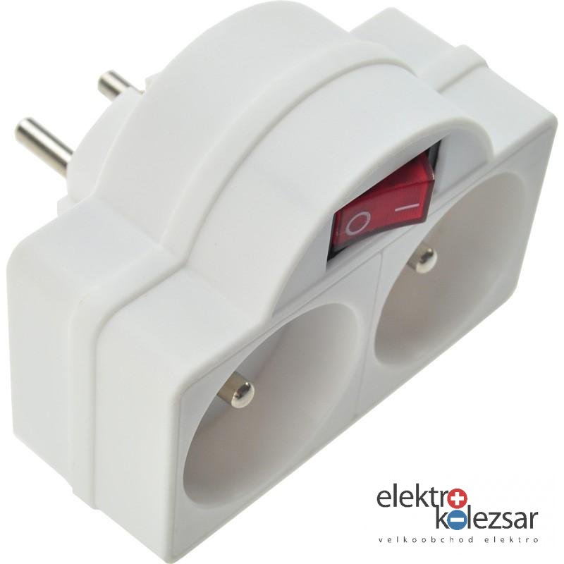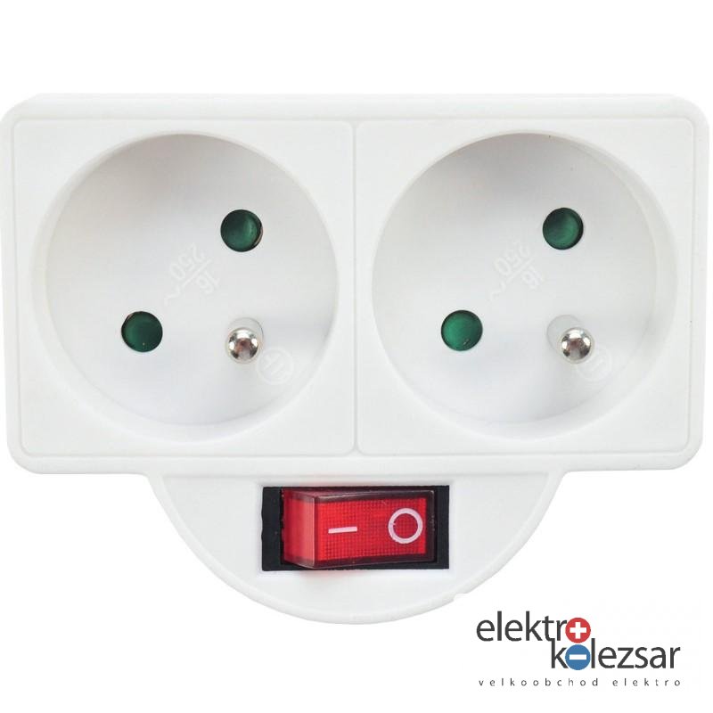 Solight rozbočka, 2x 10A, bílá, vypínač