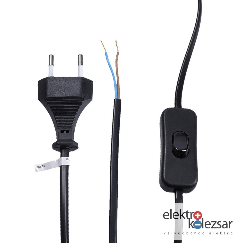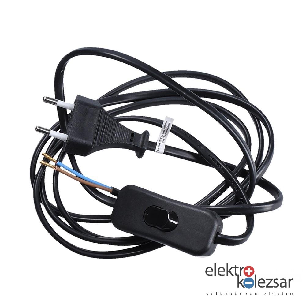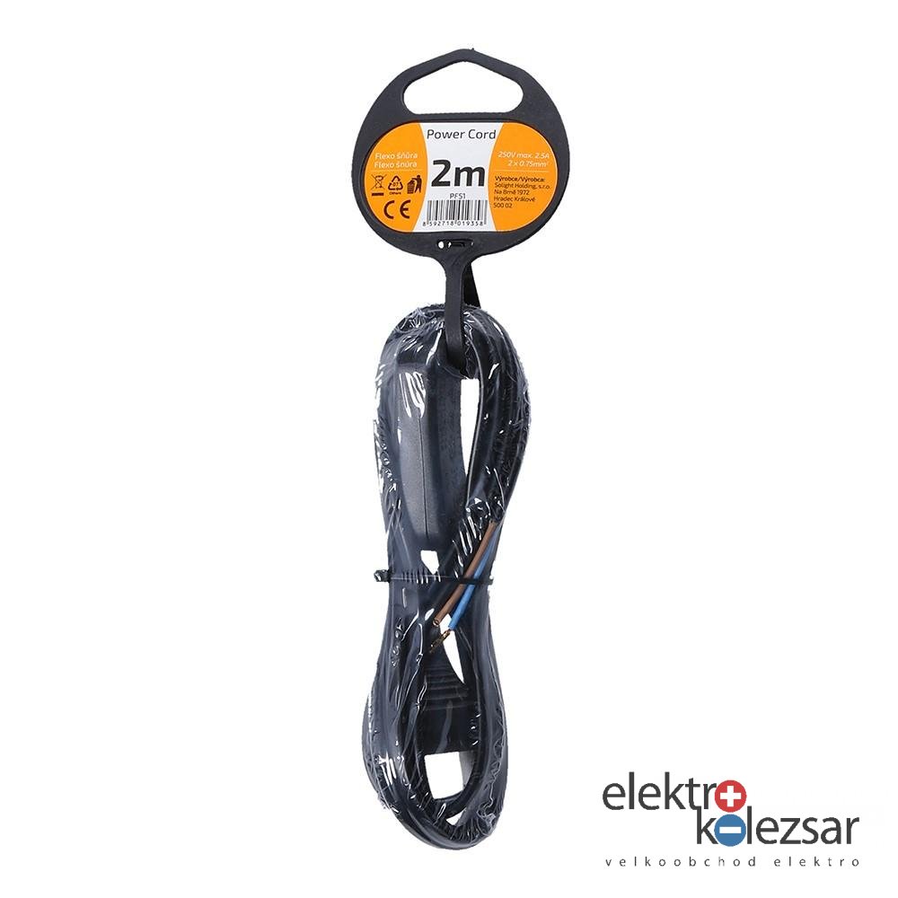 Solight flexo šňůra, 2m, 2 x 0,75mm2, černá, plochá, vypínač