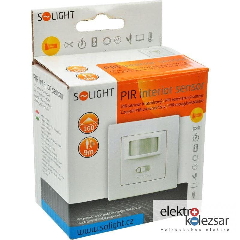 Solight PIR senzor interiérový, do krabičky od vypínačů, funkce zapnutí-vypnutí senzoru, bílý