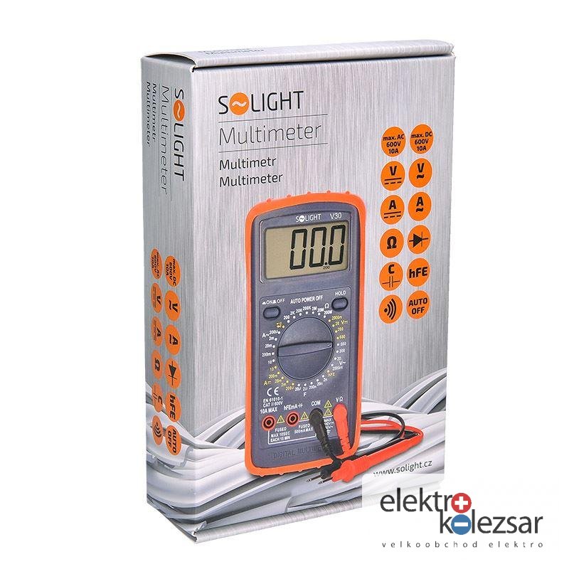 Solight multimetr, max. AC 600V/10A, max. DC 600V/10A, test diody, bzučák, hFE, kapacita, odpor