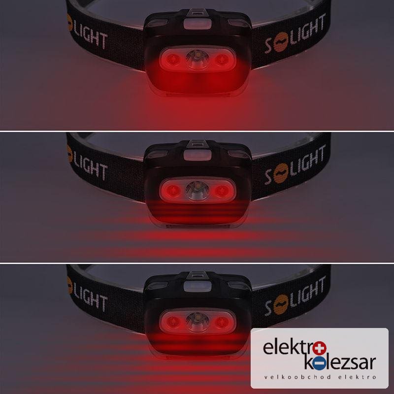 Solight LED čelová svítilna, 3W + červené světlo, 3x AAA