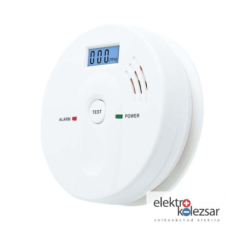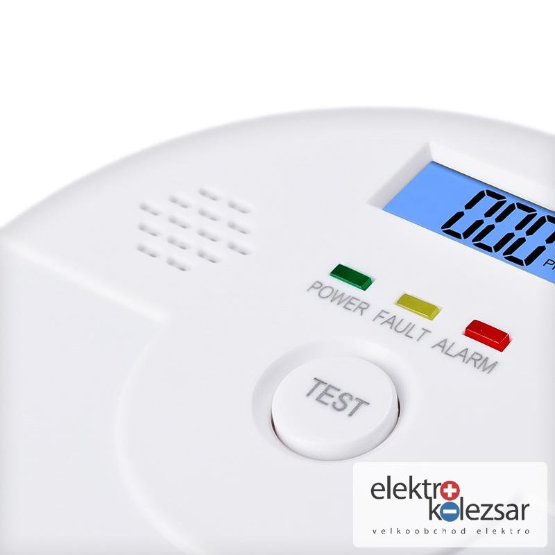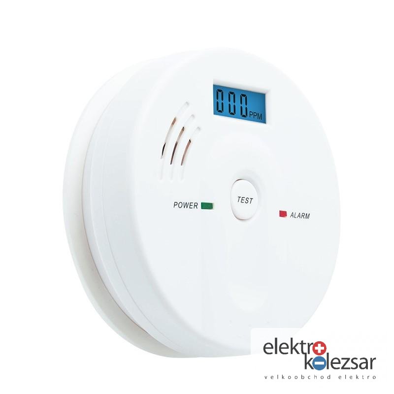 Detektor oxidu uhelnatého (CO) – včasné varování před nebezpečím. Spolehlivý detektor CO s vysoce citlivým elektrochemickým senzorem vás včas upozorní na nebezpečný plyn hlasitým alarmem (85 dB) a přehledným LCD displejem zobrazujícím aktuální hodnotu CO. Disponuje indikátorem poruchy a stavu baterie, snadnou instalací a napájením 9V baterií (součástí balení). Certifikováno dle normy EN 50291.