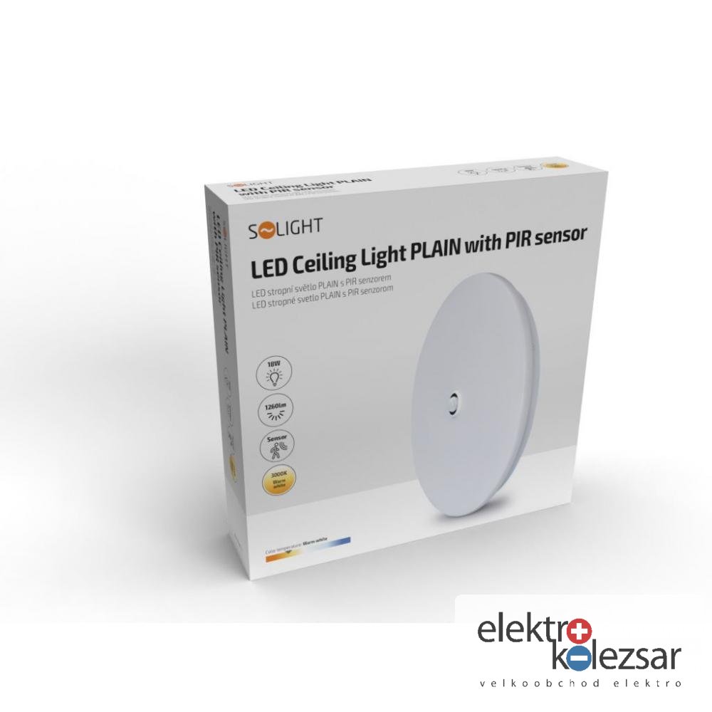 Solight LED stropní světlo PLAIN s PIR sensorem, 18W, 1260lm, 3000K, kulaté, 33cm