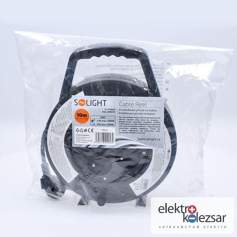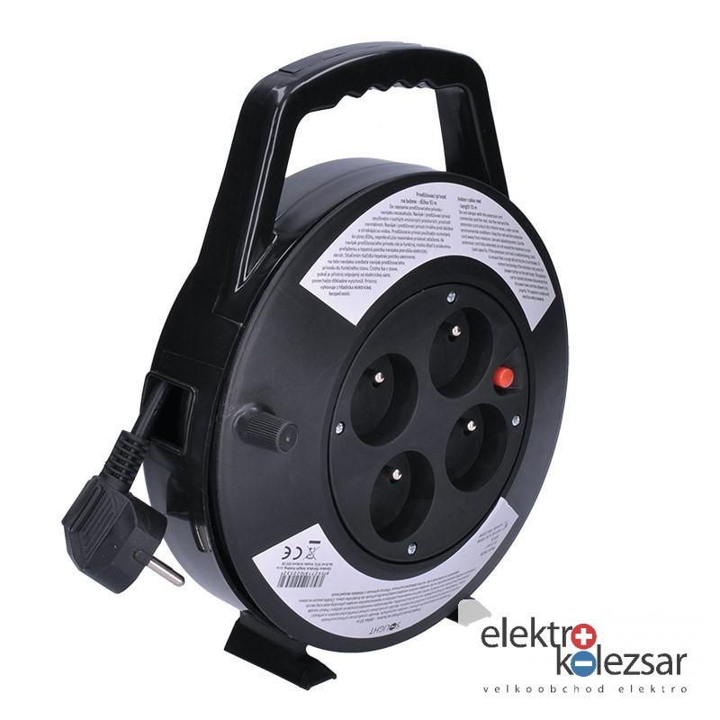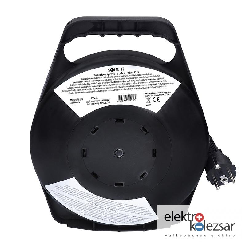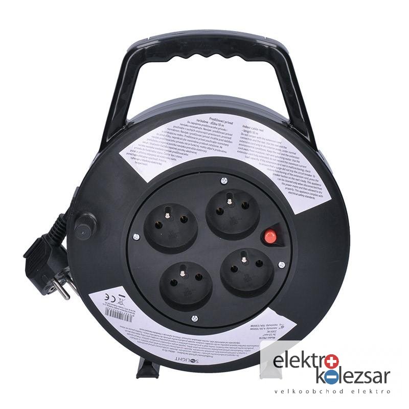 Solight prodlužovací přívod na bubnu, 4 zásuvky, 10m, černý kabel, 3x 1,0mm2
