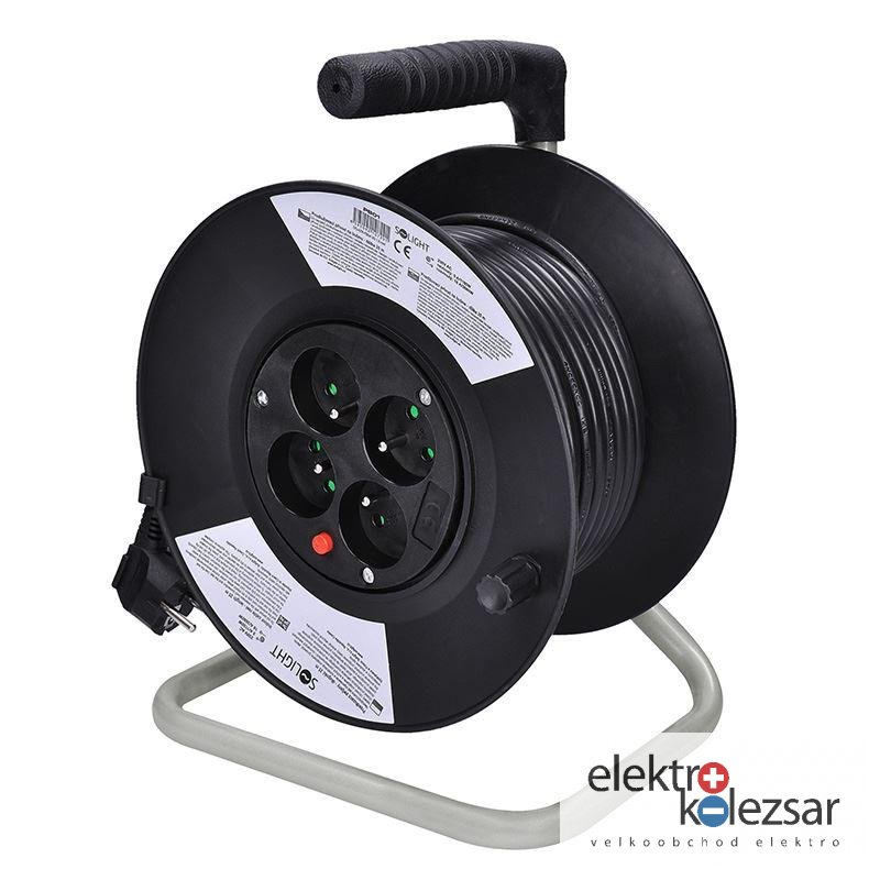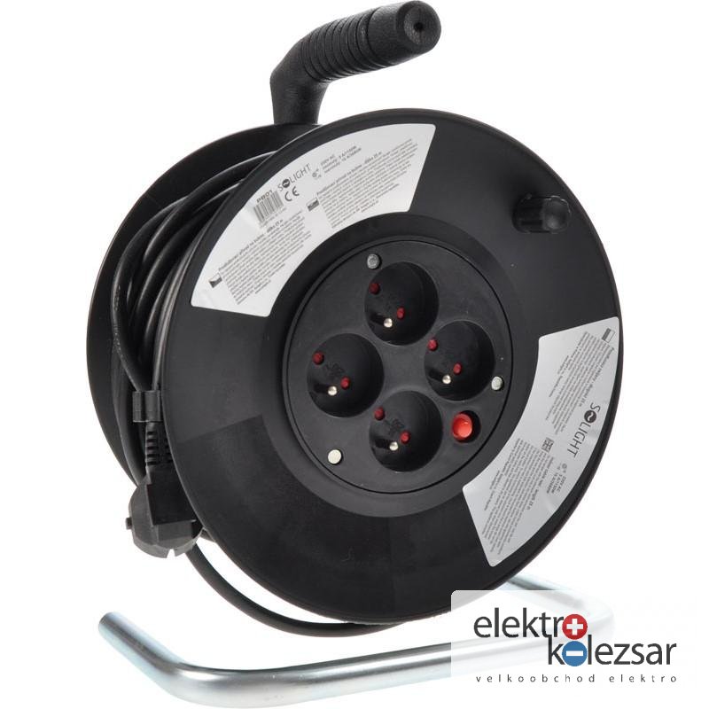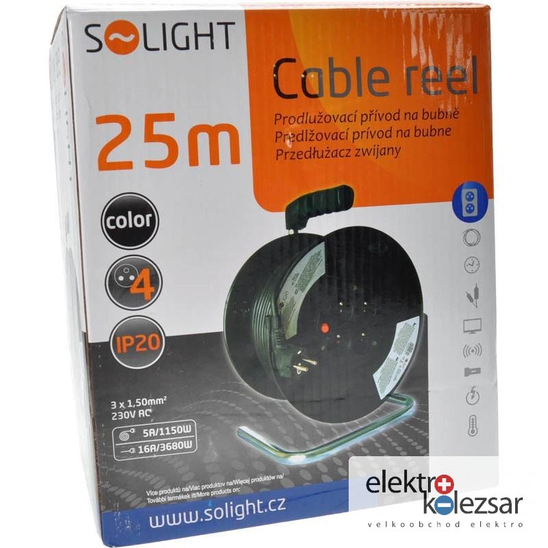 Solight prodlužovací přívod na bubnu, 4 zásuvky, 25m, černý kabel, 3x 1,5mm2