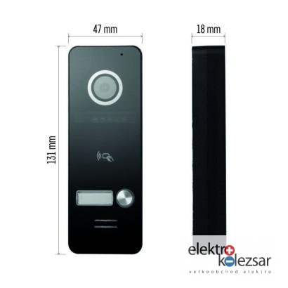 antivandal provedení kamerové jednotky: ano|aplikace pro vzdálenou správu: bez aplikace|barevné snímání: ano|funkce zabezpečení: detekce pohybu s funkcí alarmu|instalace: povrchová|krytí: IP44|napájení: z monitoru|ovládání: videotelefon|ovládání dveřního zámku: ano|počet tlačítek kamerové jednotky: 1|počet vodičů (monitor/zámek/napájení): 4/2/0|požadovaná kabeláž: FTP nebo SYKFY 5 × 2 × 0,5|připojení: bez připojení|přísvit kamery: ano, do 150 cm|prodejní obal: 1 ks, krabice|produkt: kamerová jednotka s RFID|rozměr kamerové jednotky: 131 × 47 × 18 mm|složení sady: –|snímací prvek kamery: 1/2,7" CMOS 2.0 MP, AHD + IR CUT|úhel záběru kamery: 160°