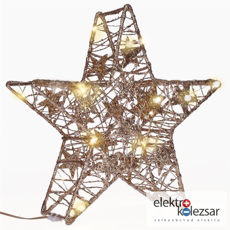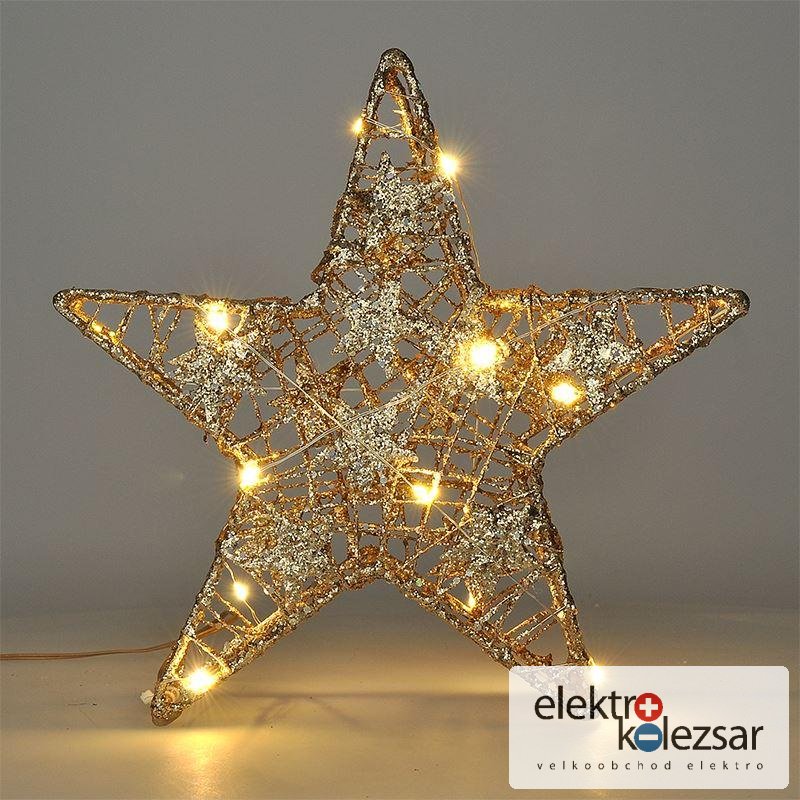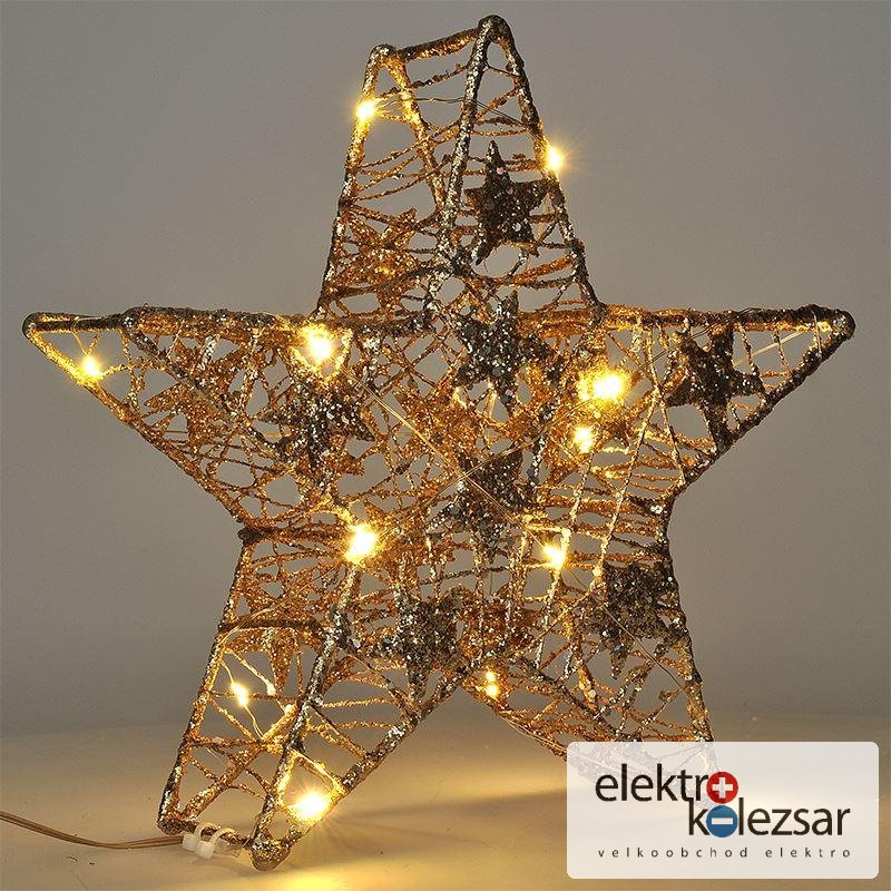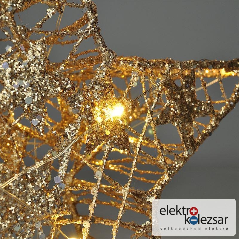 Solight vánoční hvězda glitter, zlatá, kovová, 14x LED, 2x AA