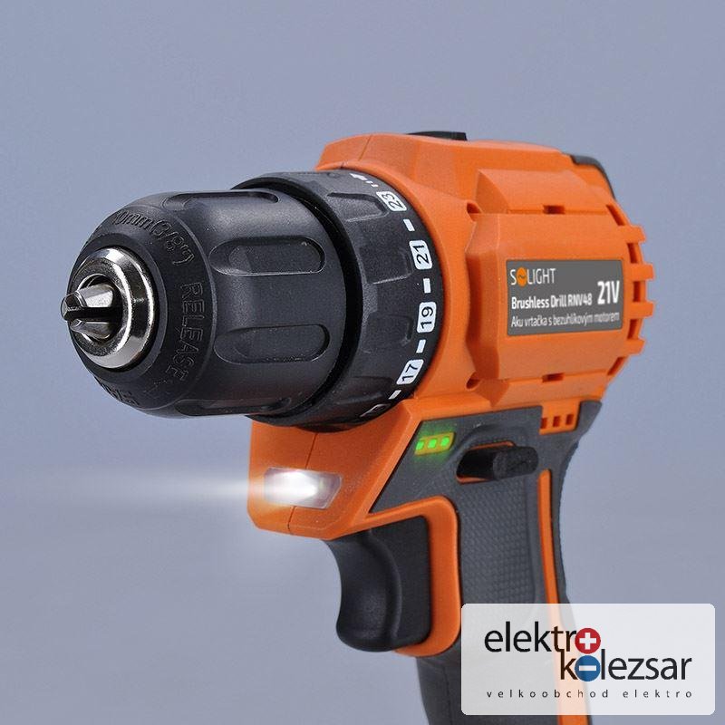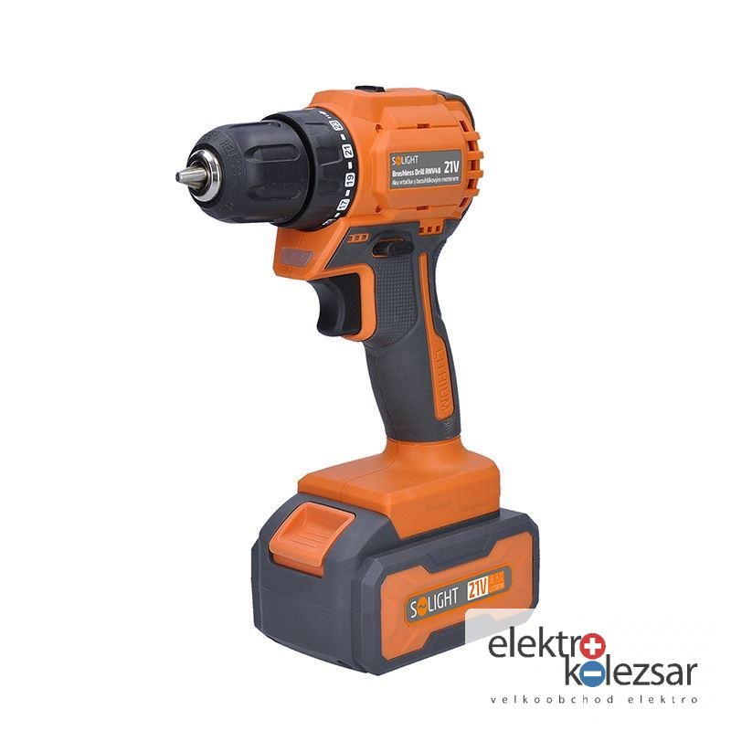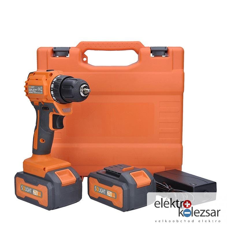 Solight akumulátorová vrtačka s příklepem 21V, 48 N.m, bezuhlíkový motor, 2x 4Ah