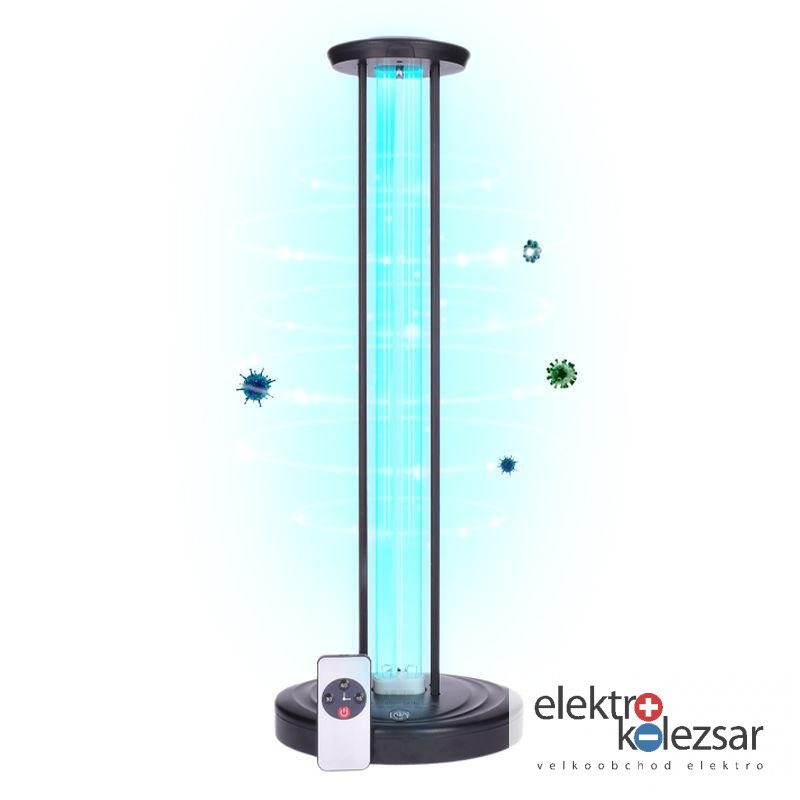 Tato přenosná germicidní lampa poskytuje účinnou dezinfekci domácností, kanceláří, škol a dalších prostor pomocí UV-C záření a ozónu. Je až 3000× rychlejší než chlór a 25× efektivnější než kyselina chloritá. Likviduje viry, bakterie, plísně a roztoče na ploše až 40 m2. Nabízí časovač 15/30/60 minut, dálkové ovládání s dosahem 15 m a bezpečnostní zpožděné zapnutí. Disponuje křemíkovou trubicí, výkonem 38 W a životností zářiče až 5000 hodin. Napájení 230V/50Hz, délka kabelu 1,2 m. Barva černá, hmotnost 1,1 kg.