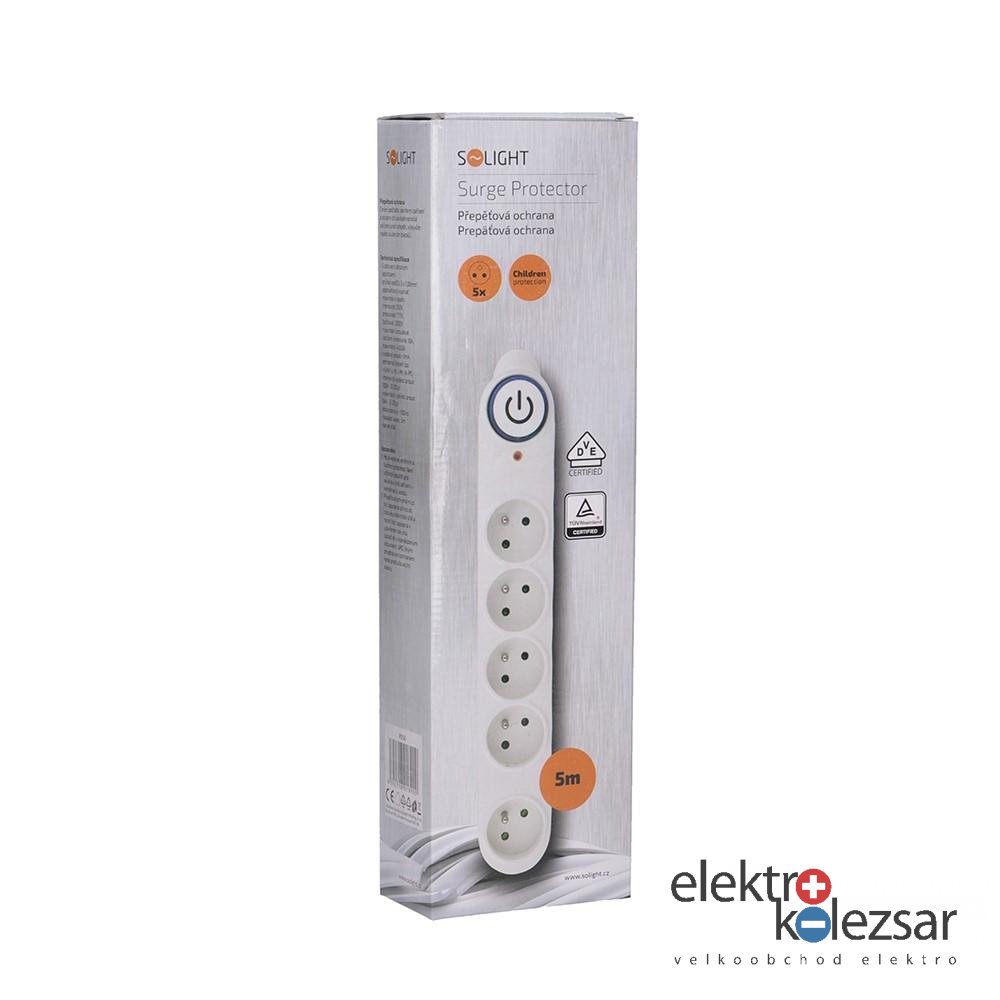 Solight přepěťová ochrana, 150J, 5 zásuvek, 5m, bílá