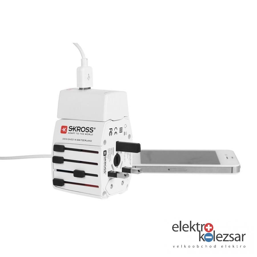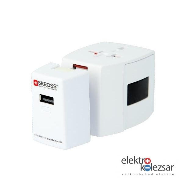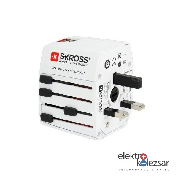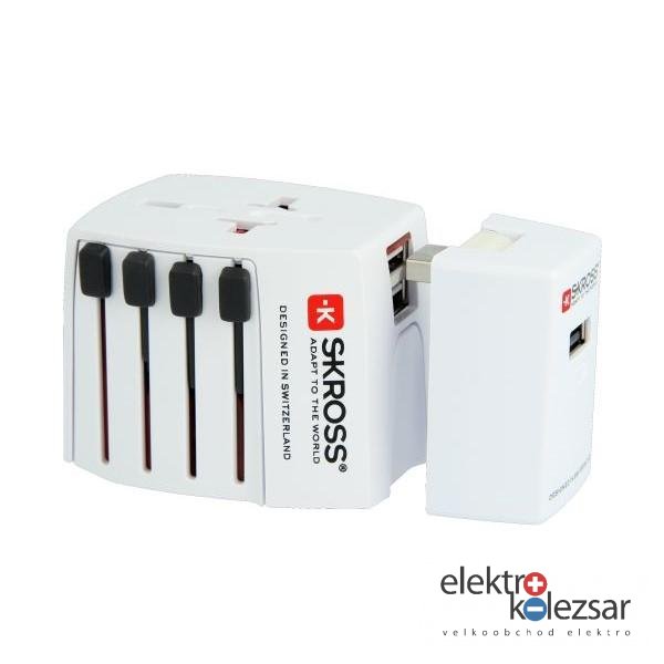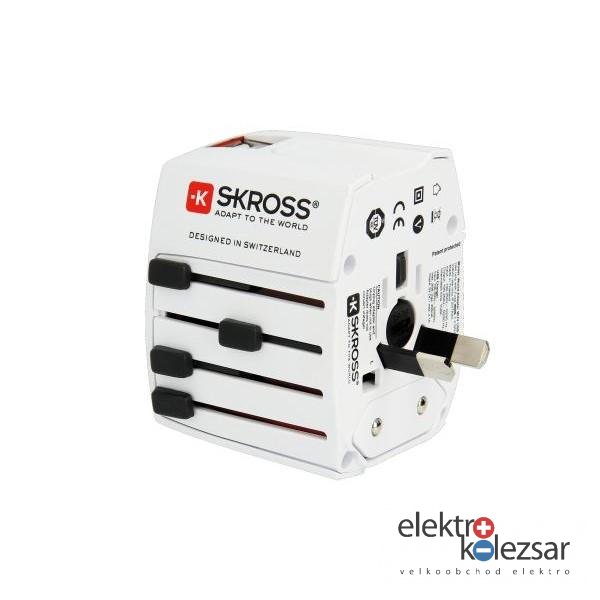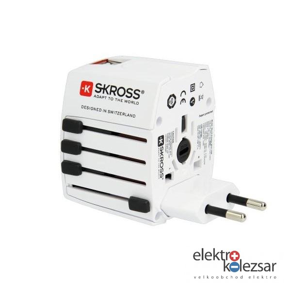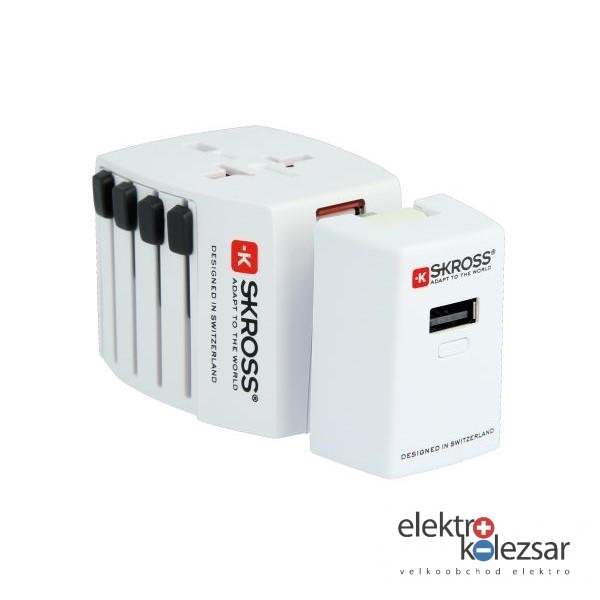 SKROSS cestovní adaptér SKROSS Power Pack, 2.5A max., vč. SOS battery powerbanku, USB nabíjení 2x výstup 2100mA, univerzální pro 150 zemí