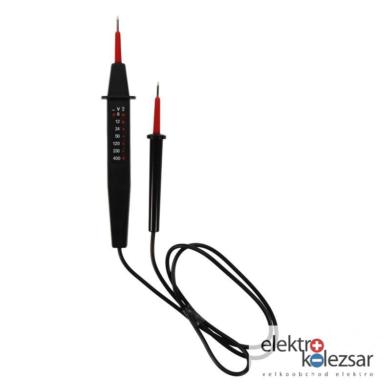 Zkoušečka napětí pro AC 6V-400V a DC 6V-400V. Test baterií 9V a 12V. LED signalizace pro napětí 6V, 12V, 24V, 50V, 120V, 230V, 400V. Obsahuje dvě měřící sondy a frekvenční rozsah 0-60Hz. Délka kabelu: 0,9m.