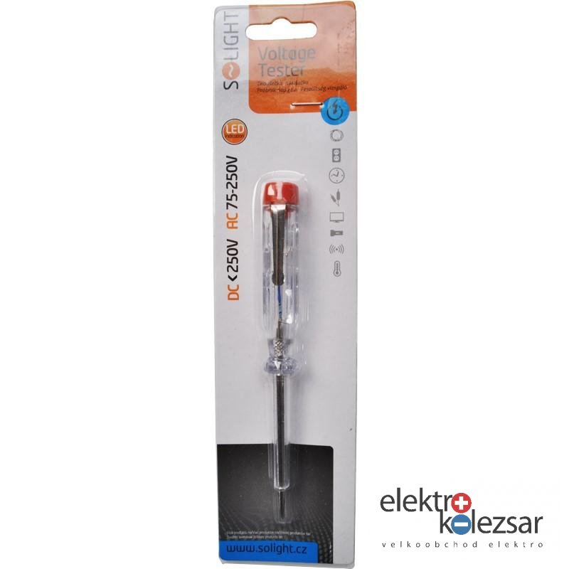 Zkoušečka napětí pro AC 70-250V a DC <250V. Optická signalizace pro určení fáze a kontrolu elektrospotřebičů. Rozměry: 3mm x 140mm.