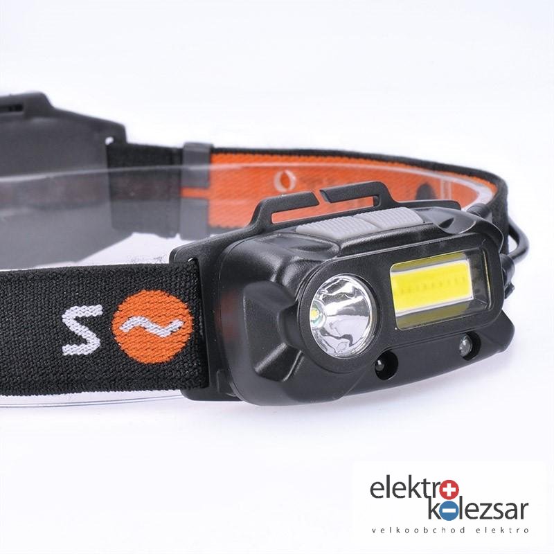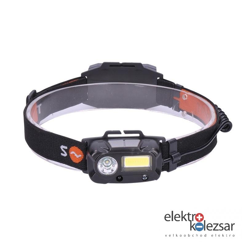 Solight LED čelová nabíjecí svítilna, 3W + COB,150 + 60lm, Li-Ion