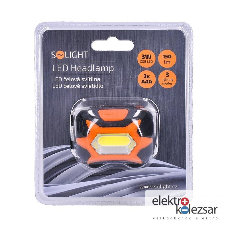 Solight LED čelová svítilna, 3W COB, 3x AAA
