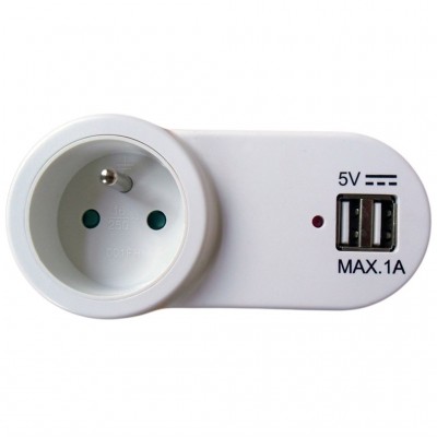 Solight USB nabíjecí adaptér s průběžnou zásuvkou, 2x USB, 1000mA max., bílý